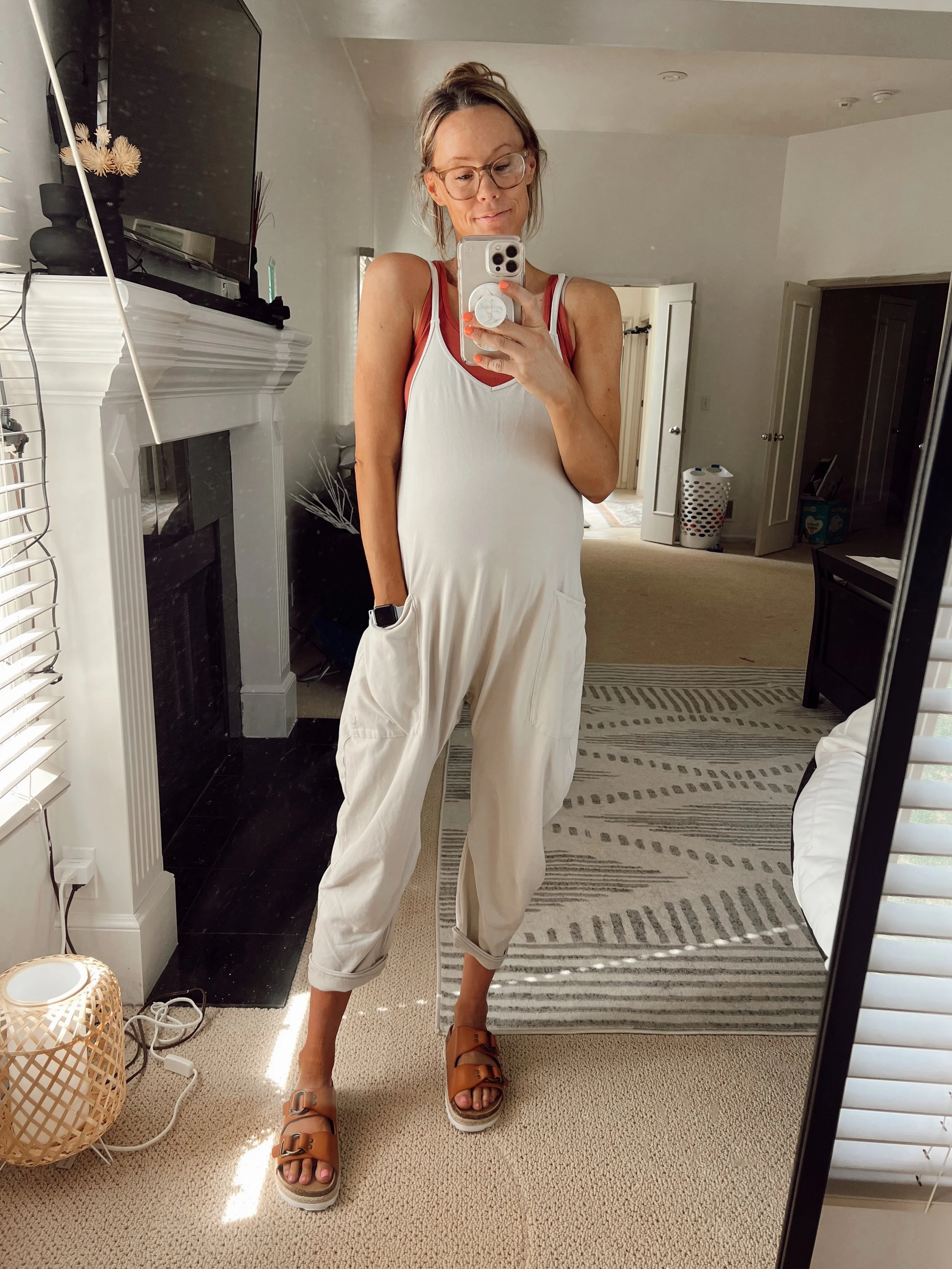 3. Free People Jumpsuit - This was a staple while I was pregnant but is so cute if you are pregnant or not! I am wearing a small, (and it still looks cute with no bump!)